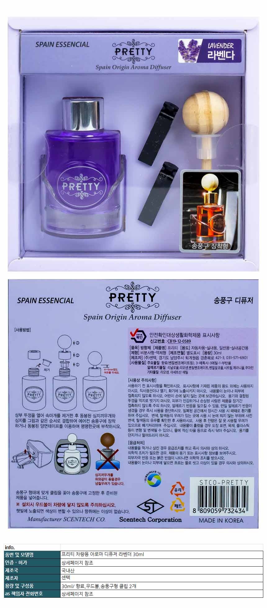 프리티 차량용 아로마 디퓨저 라벤다 30ml