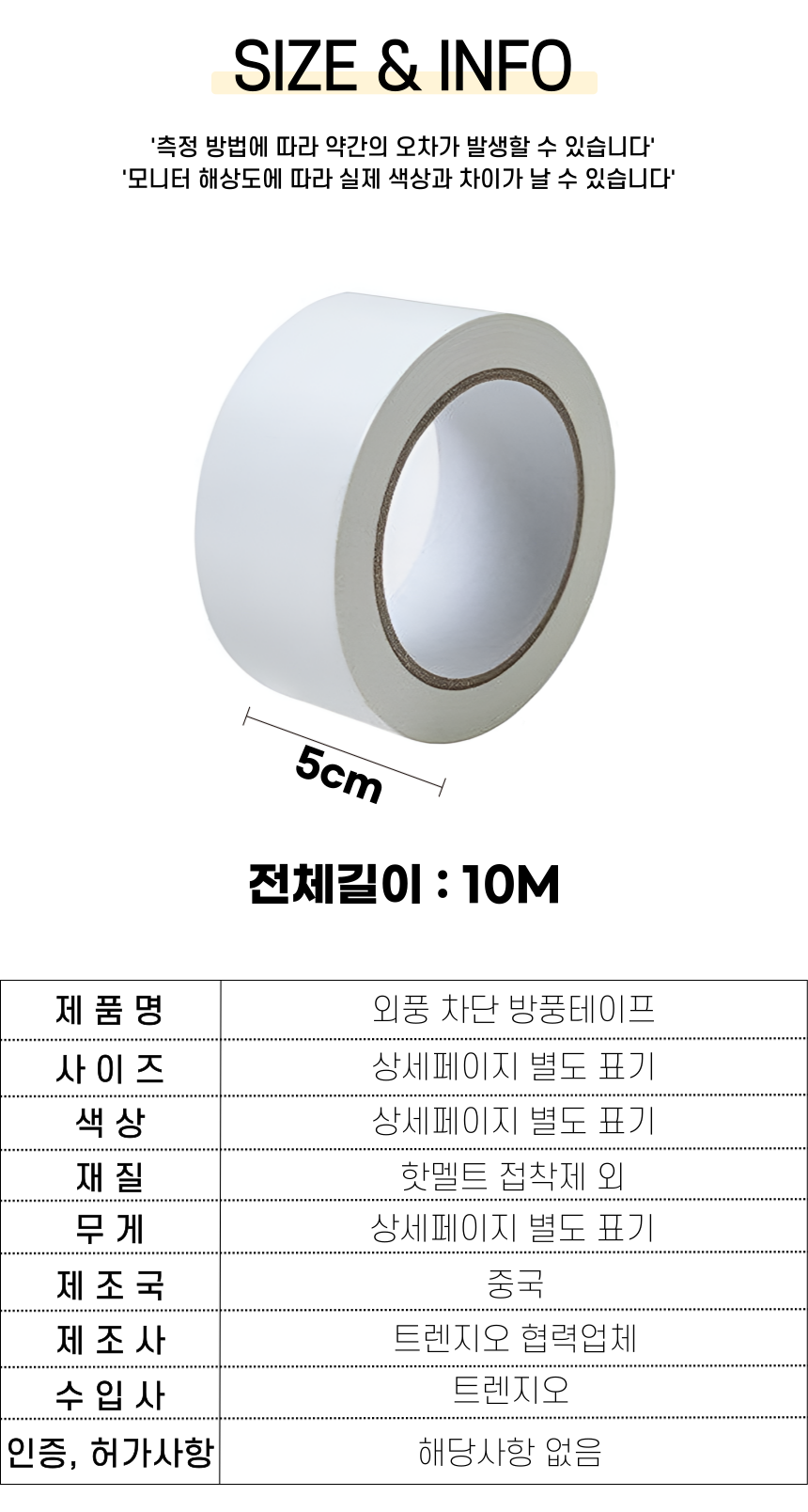 틈새차단 방풍테이프 방풍 방음 방충 50mm 10M