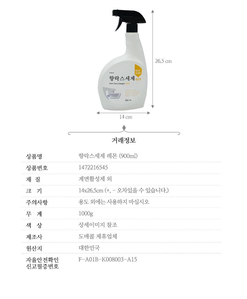 뿌리는 세제 향락스 레몬 900ml 청소 욕실청소 세정제