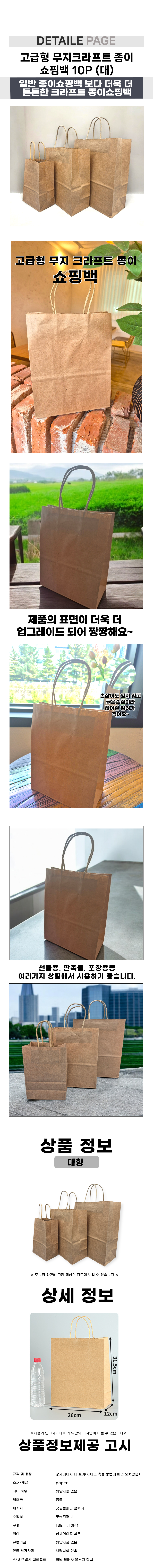 고급형 무지 크라프트 종이 쇼핑백 대 10P