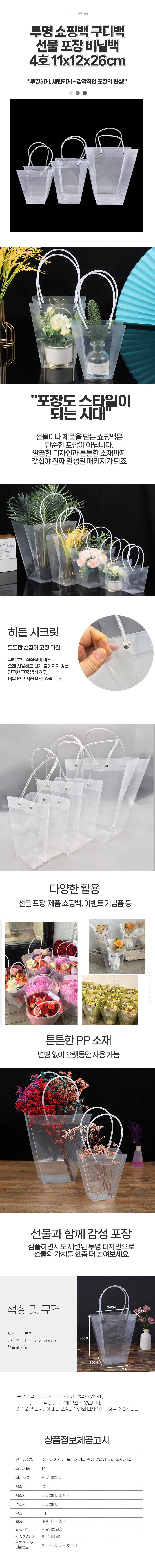 투명 소핑백 구디백 선물 포장 비닐백 4호 11x12x26cm