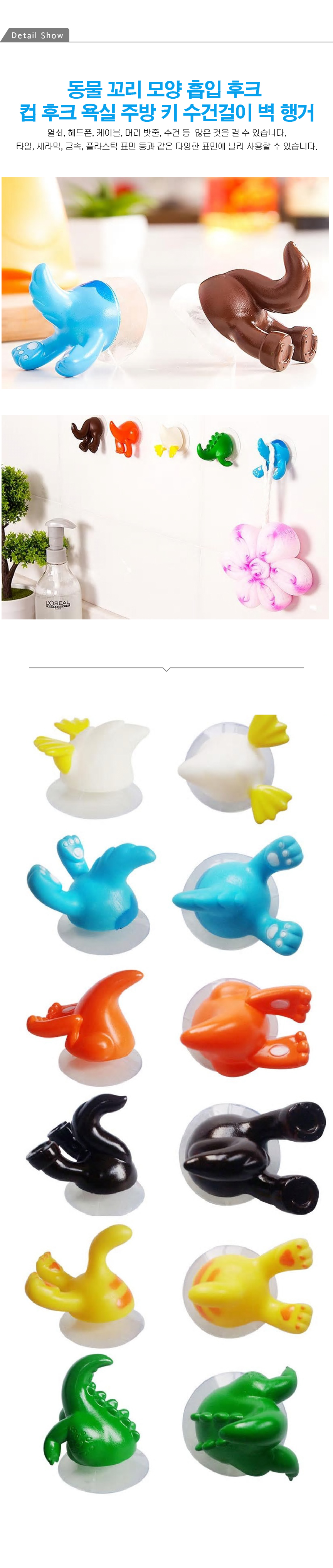 주방후크 귀여운 동물 꼬리 모양 흡입 후크