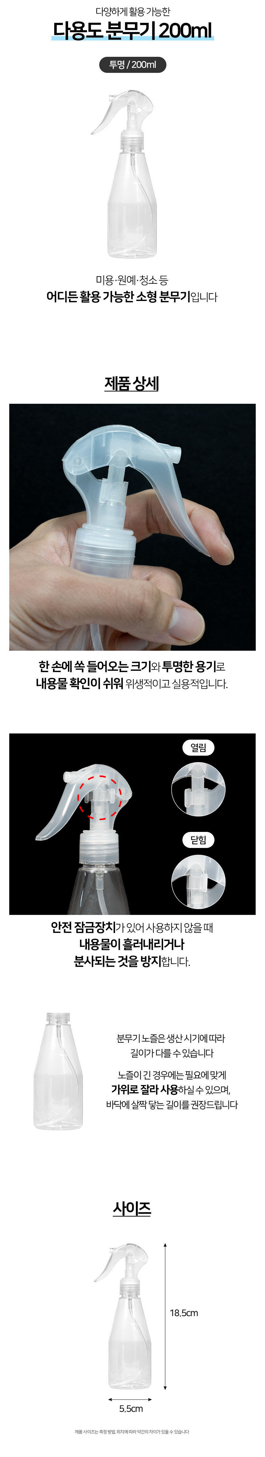 투명 분무기 원예 미용 스프레이 200ml
