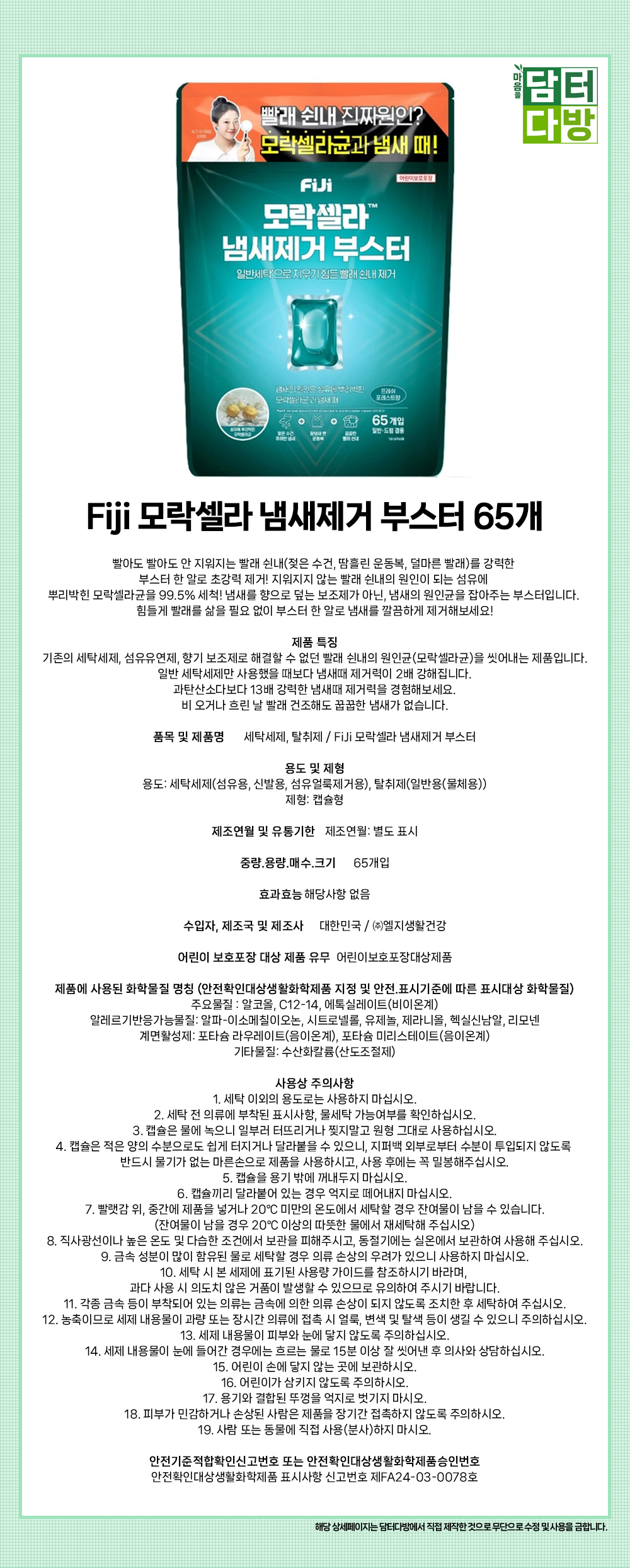 Fiji 모락셀라 냄새제거 부스터 65개