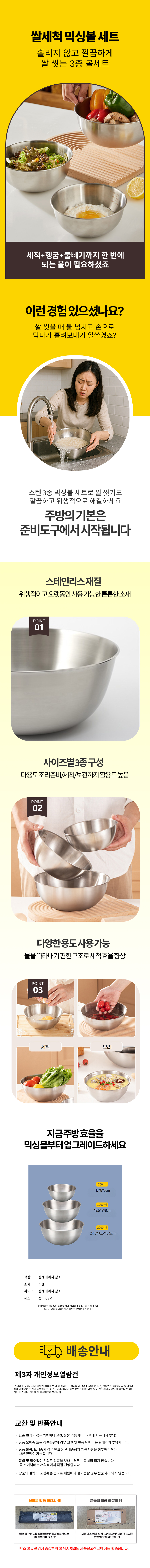 쌀세척 믹싱볼 3종세트 볼 쌀씻는통 세척용 스텐