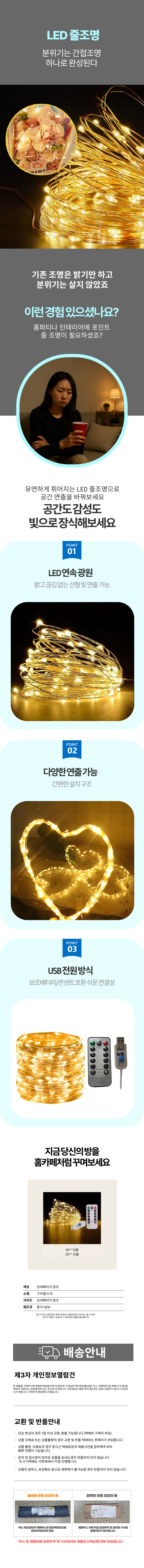 장식소품 벽트리 캠핑조명 LED 줄조명 라이트 홈파티