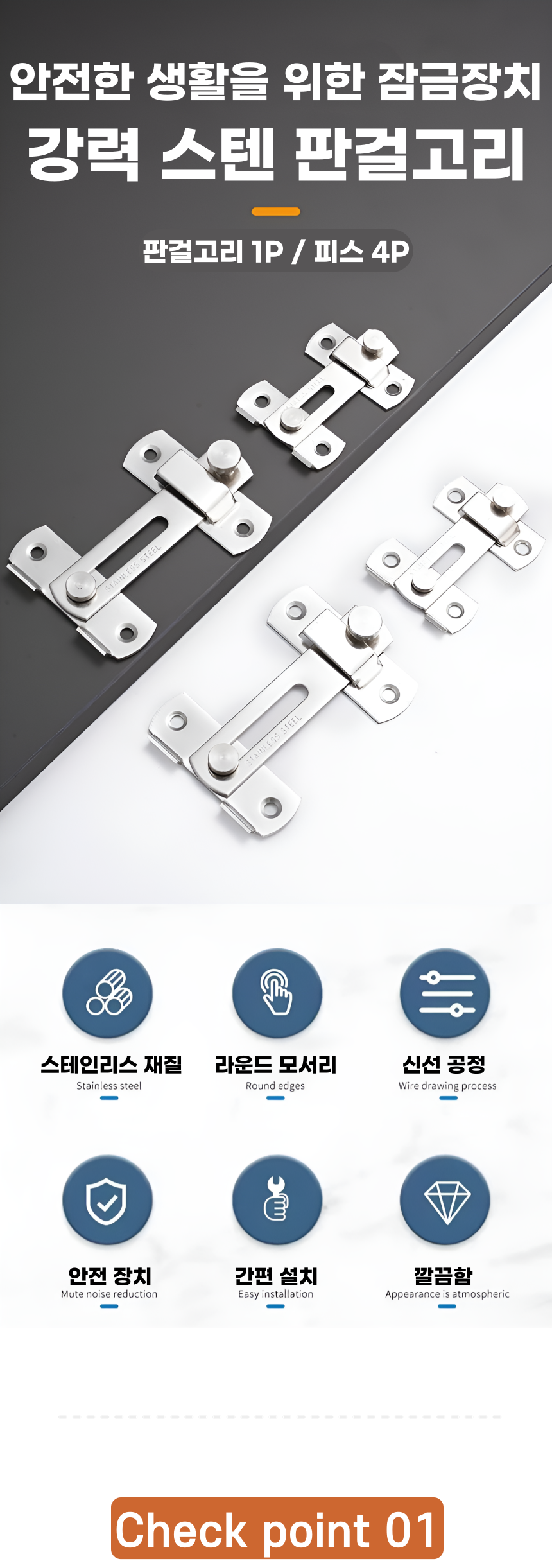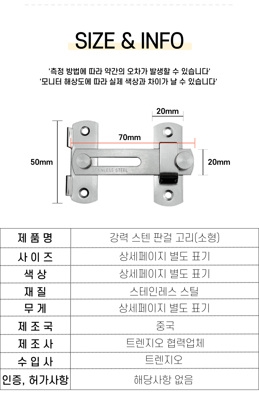 스텐 판걸 고리 문 잠금장치 도어버클 시건장치 소형