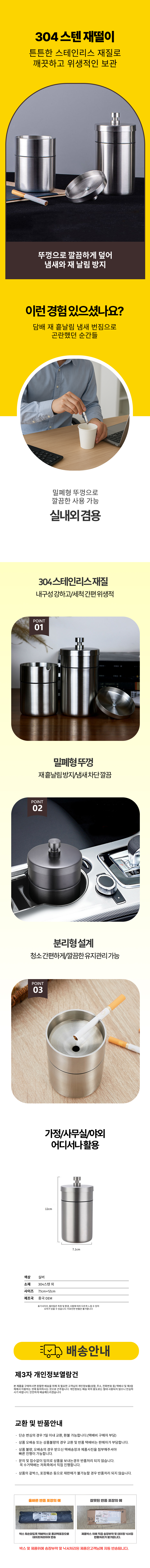 304 스텐 뚜껑 분리형 재떨이 스테인리스 휴대용