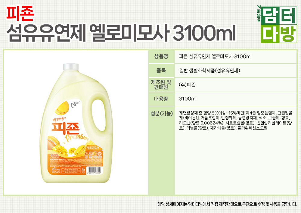피죤 섬유유연제 옐로미모사 3100ml X 4개