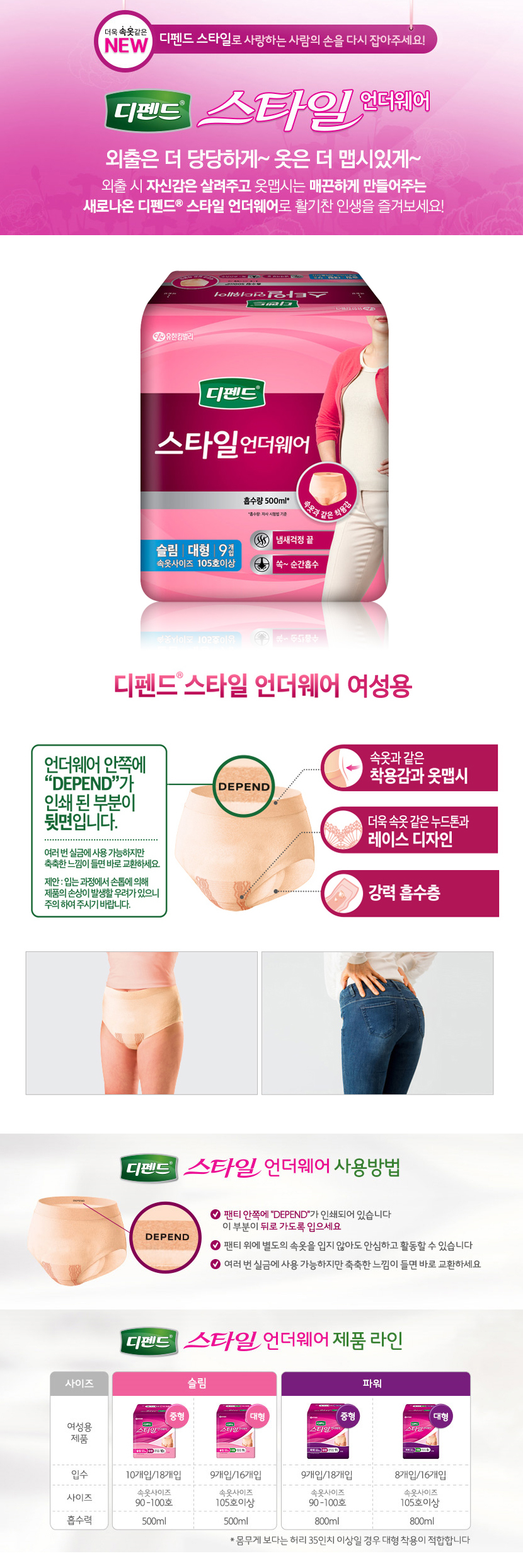 디펜드 스타일 언더웨어 슬림대형 9개입 성인용기저귀