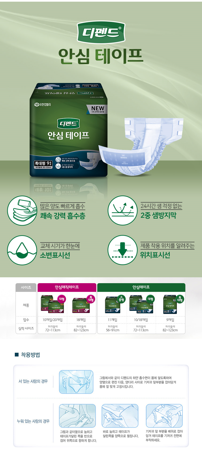 디펜드 성인용기저귀 안심테이프 특대형 9개입