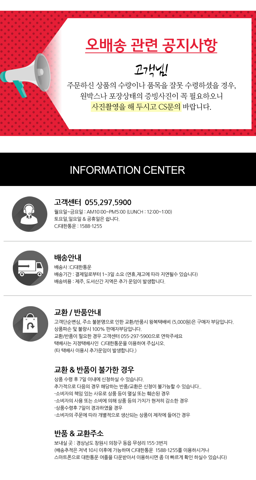 상품의 불량 또는 오배송 고객 부담이 아닙니다.