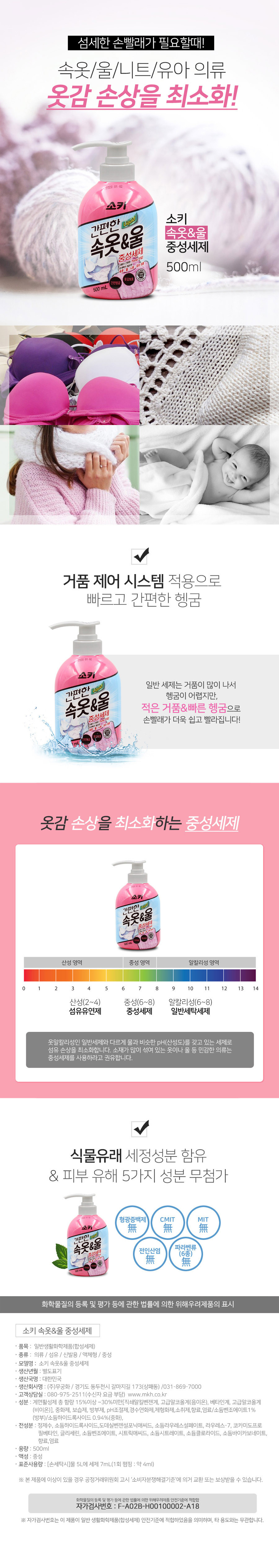 무궁화 소키 속옷앤울 중성세제 500ml