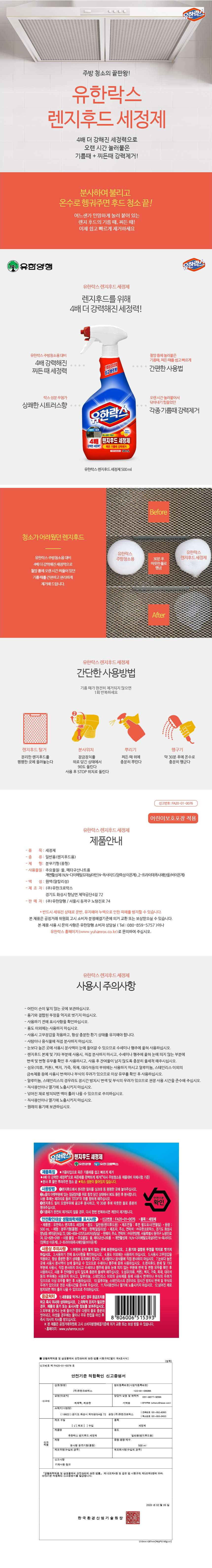 유한양행 유한락스 렌지후드세정제 500ml