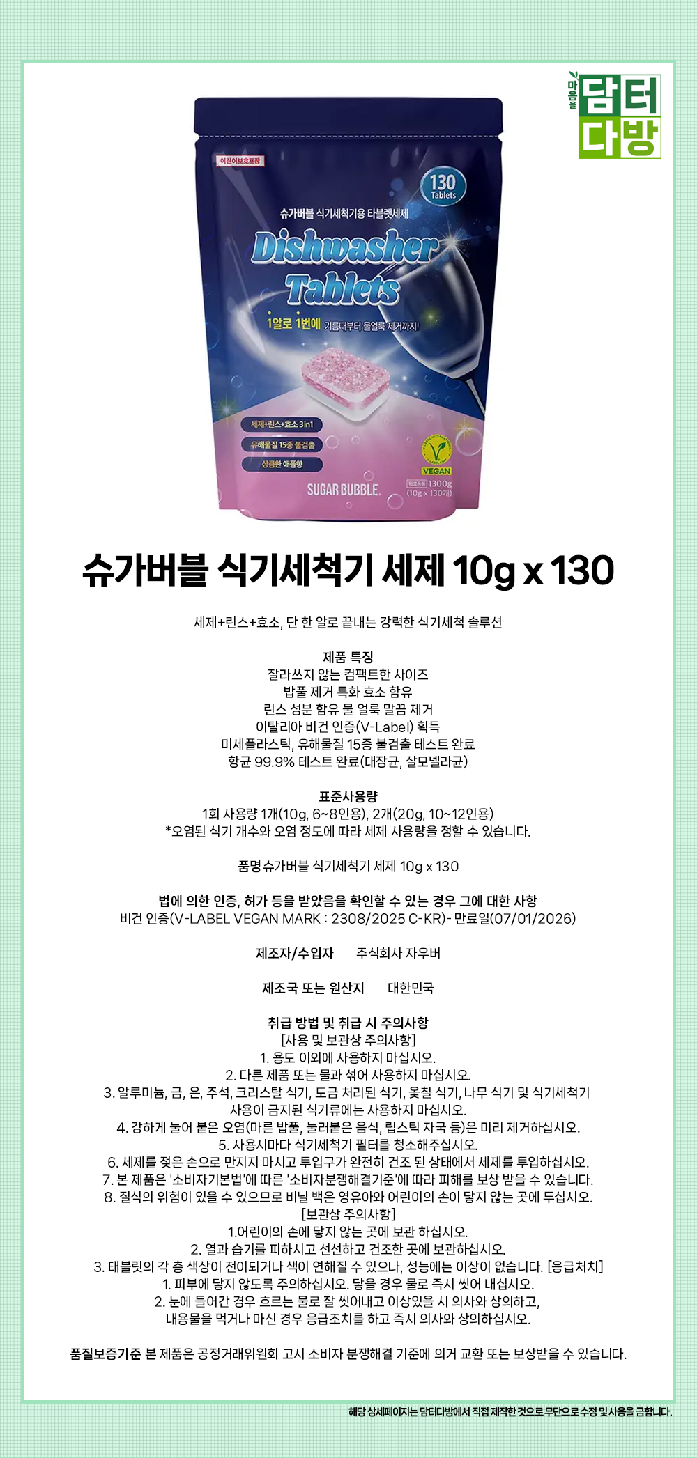 슈가버블 식기세척기 세제 10g x 130