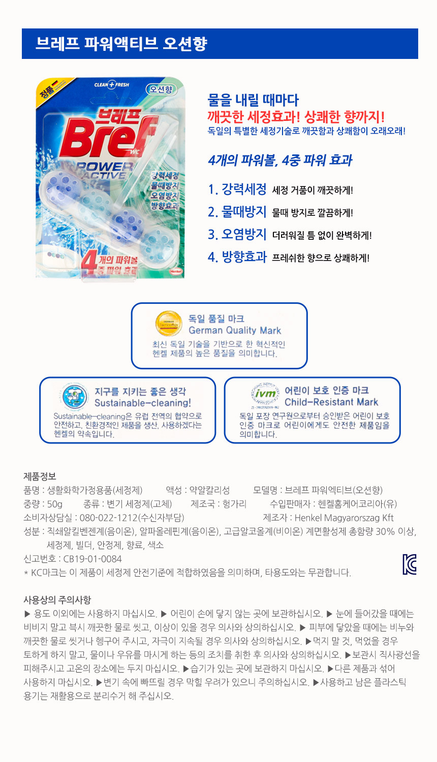 브레프 파워액티브 오션향 1p 변기세정제 냄새제거