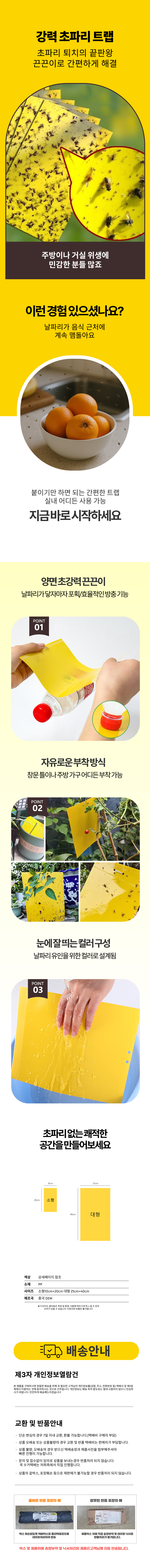 초강력 초파리 트랩 양면 끈끈이 날파리 퇴치 벌레