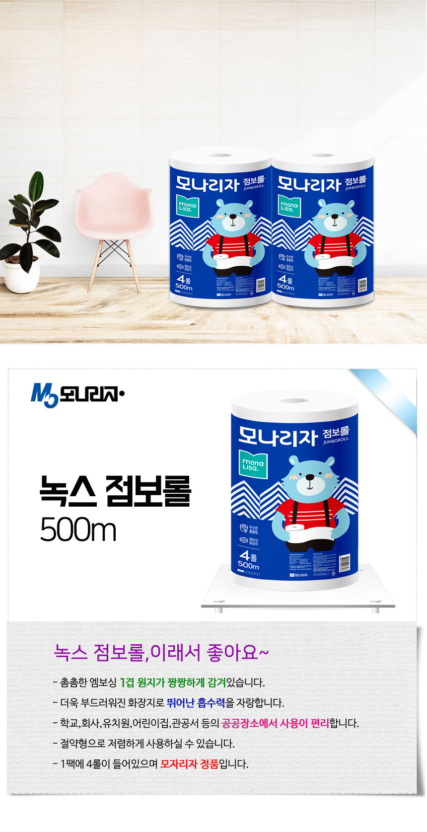 모나리자 점보롤 화장지 1겹 500m 4롤