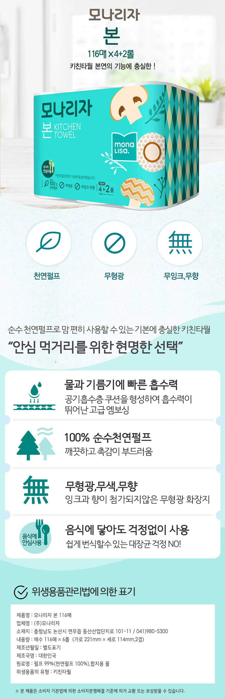 모나리자 본 키친타올 116매 4+2롤