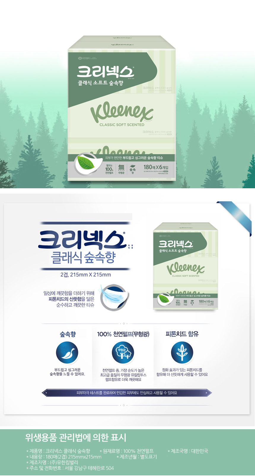 크리넥스 클래식 숲속향 각티슈 180매 6입
