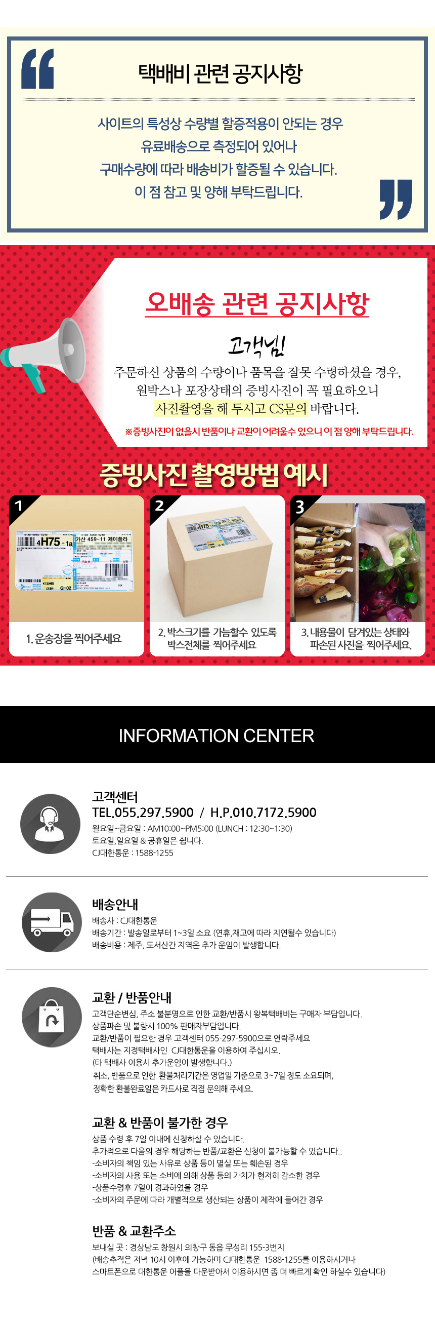 상품의 불량 또는 오배송 고객 부담이 아닙니다.