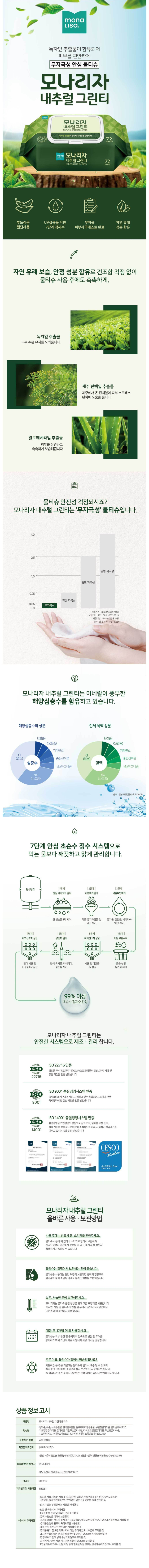 모나리자 내추럴 그린티 물티슈 72매 캡형 4입