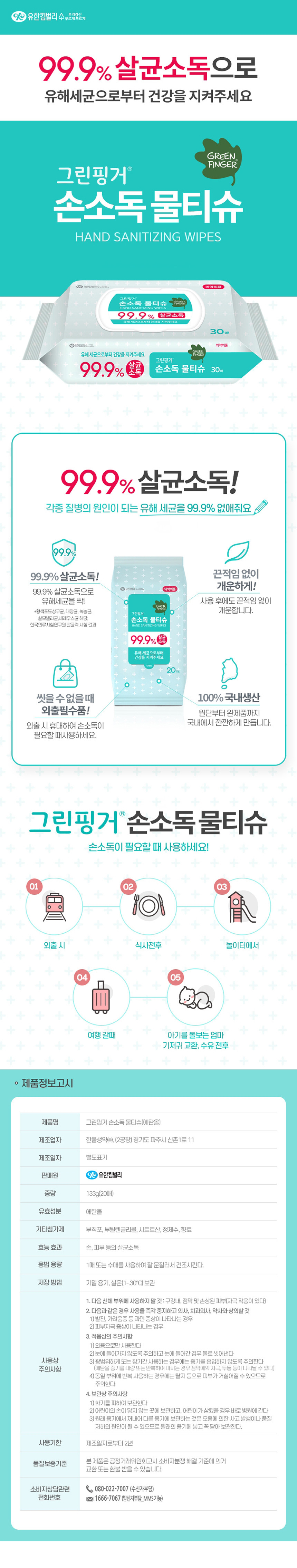 그린핑거 손소독 물티슈 살균티슈 캡형 30매