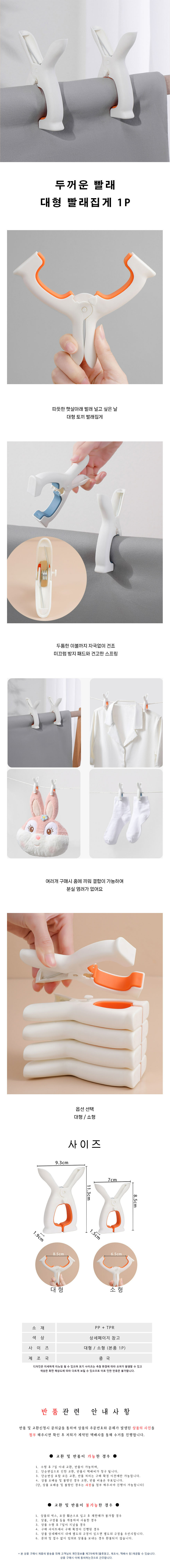 두꺼운 빨래 대형 빨래집게 토끼디자인 1P