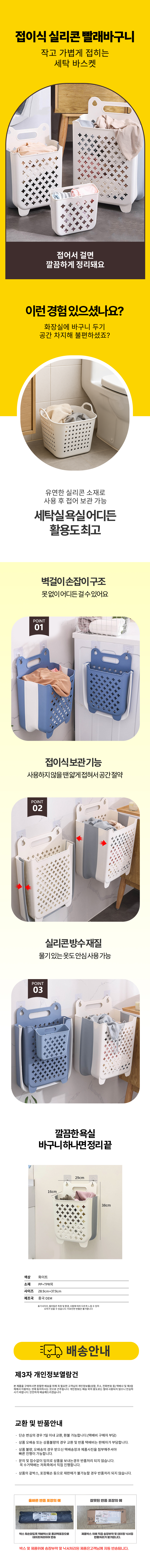 접이식 빨래 바구니 벽걸이 실리콘바스켓 화장실 방수
