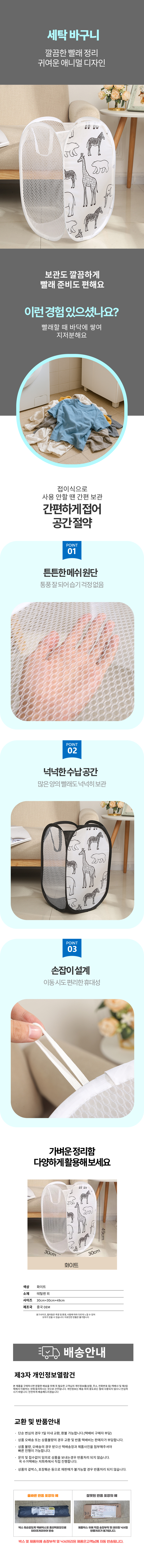 가벼운 손잡이 바구니 매쉬 접이식 바스켓 빨래통