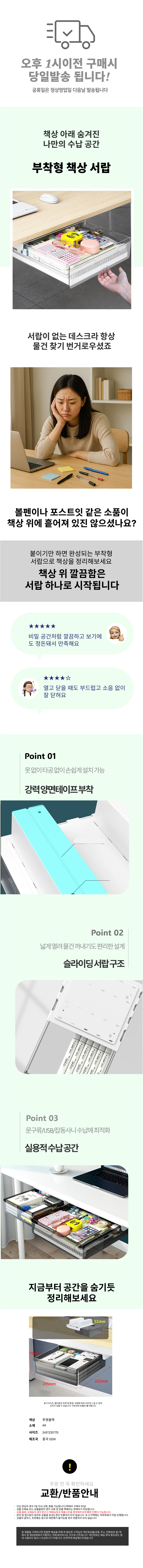 인테리어 서랍 부착식 데스크 정리 수납 사무용품