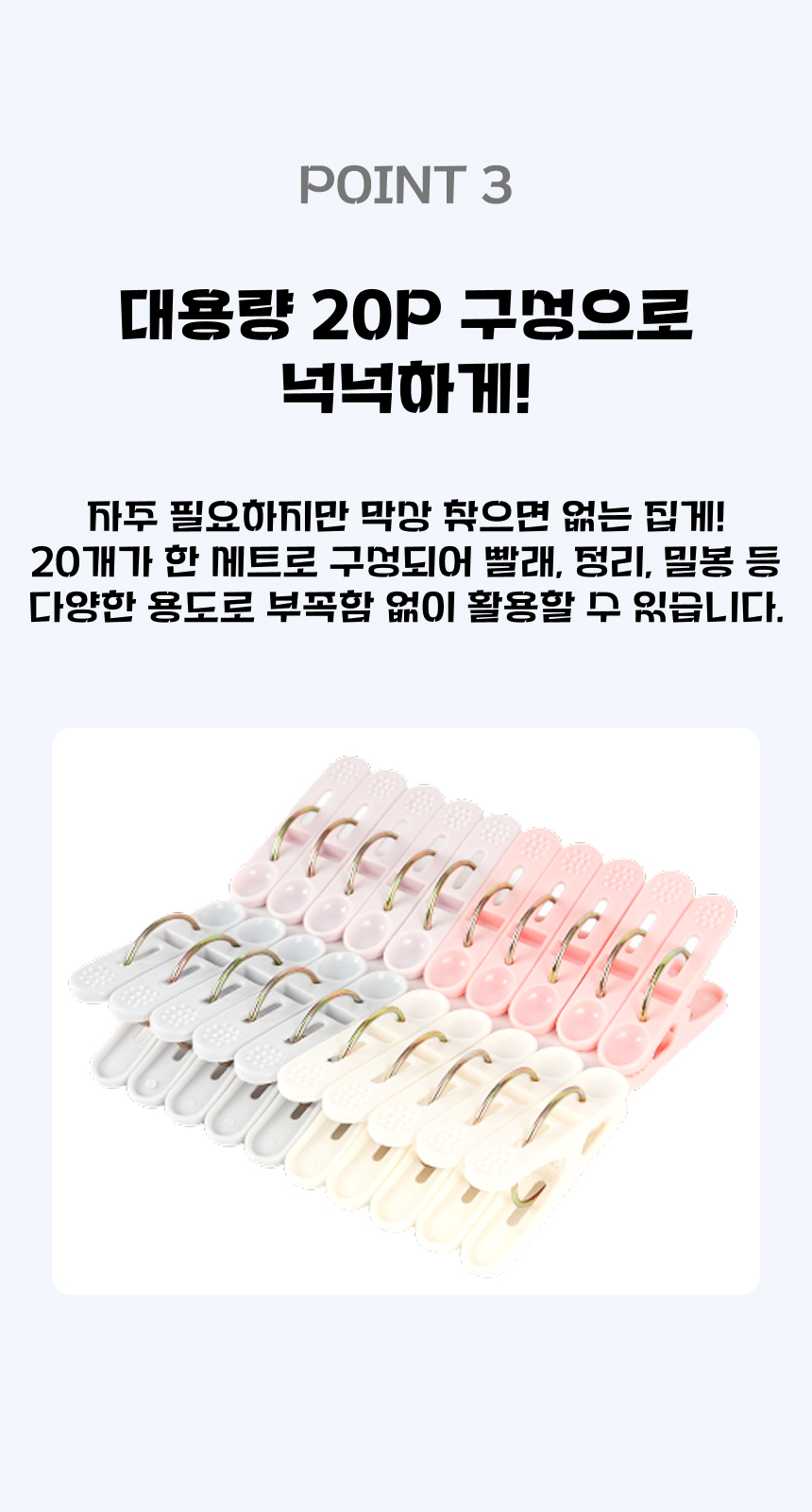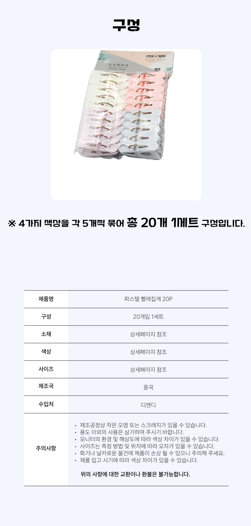 파스텔 미니 빨래 집게 다용도 논슬립 대용량 20개 세트
