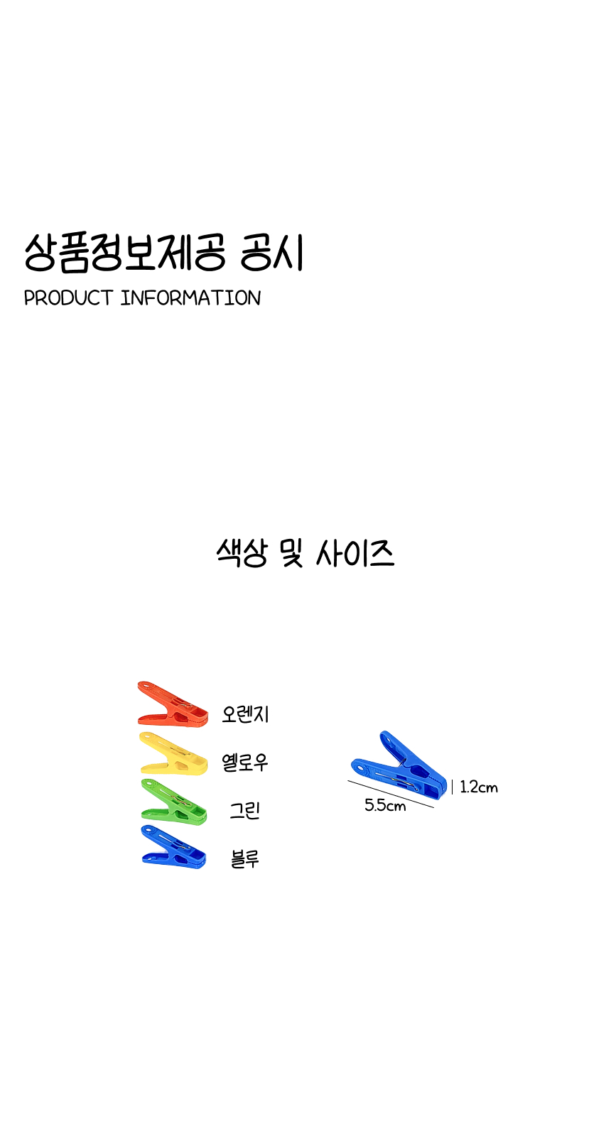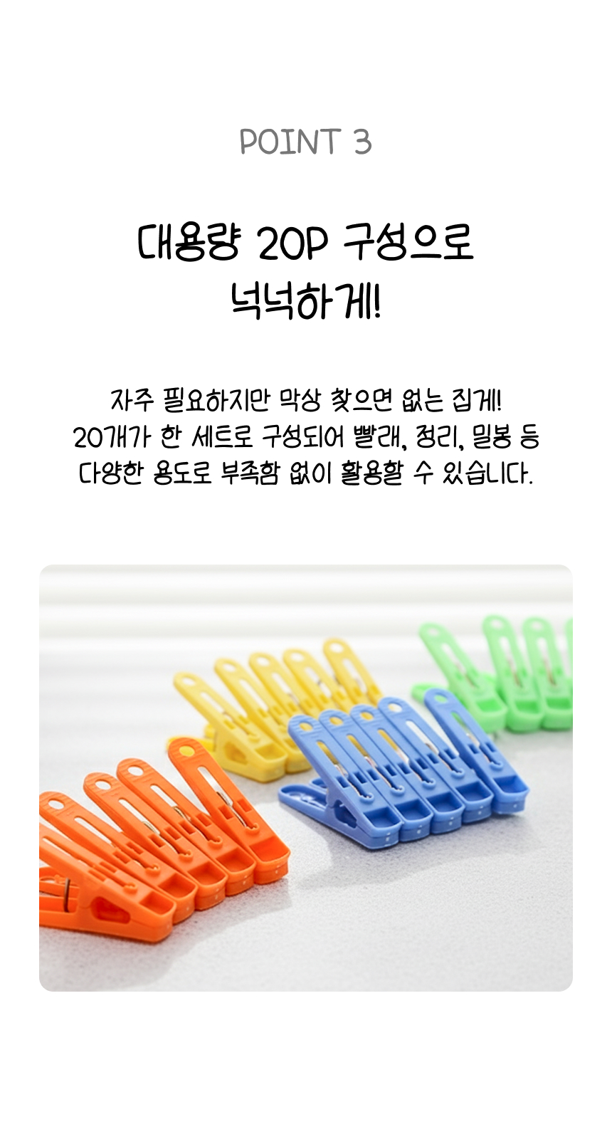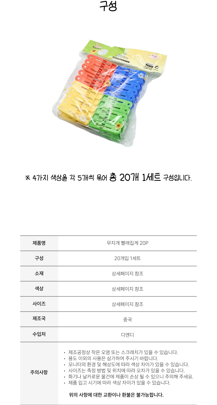 빨래 집게 소형 다용도 논슬립 무지개 컬러 대용량 20P 세트