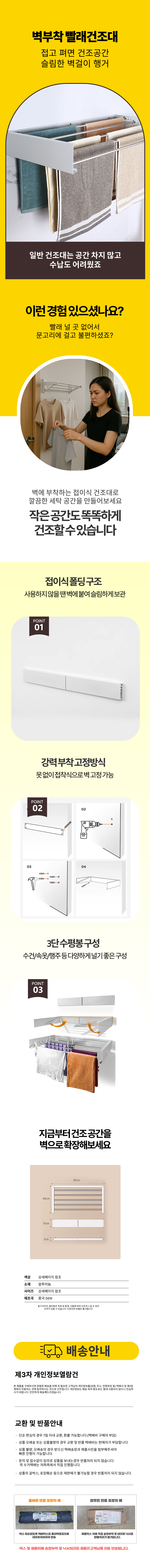 벽 부착형 빨래건조대 수건 건조대 접이식 슬림 행거