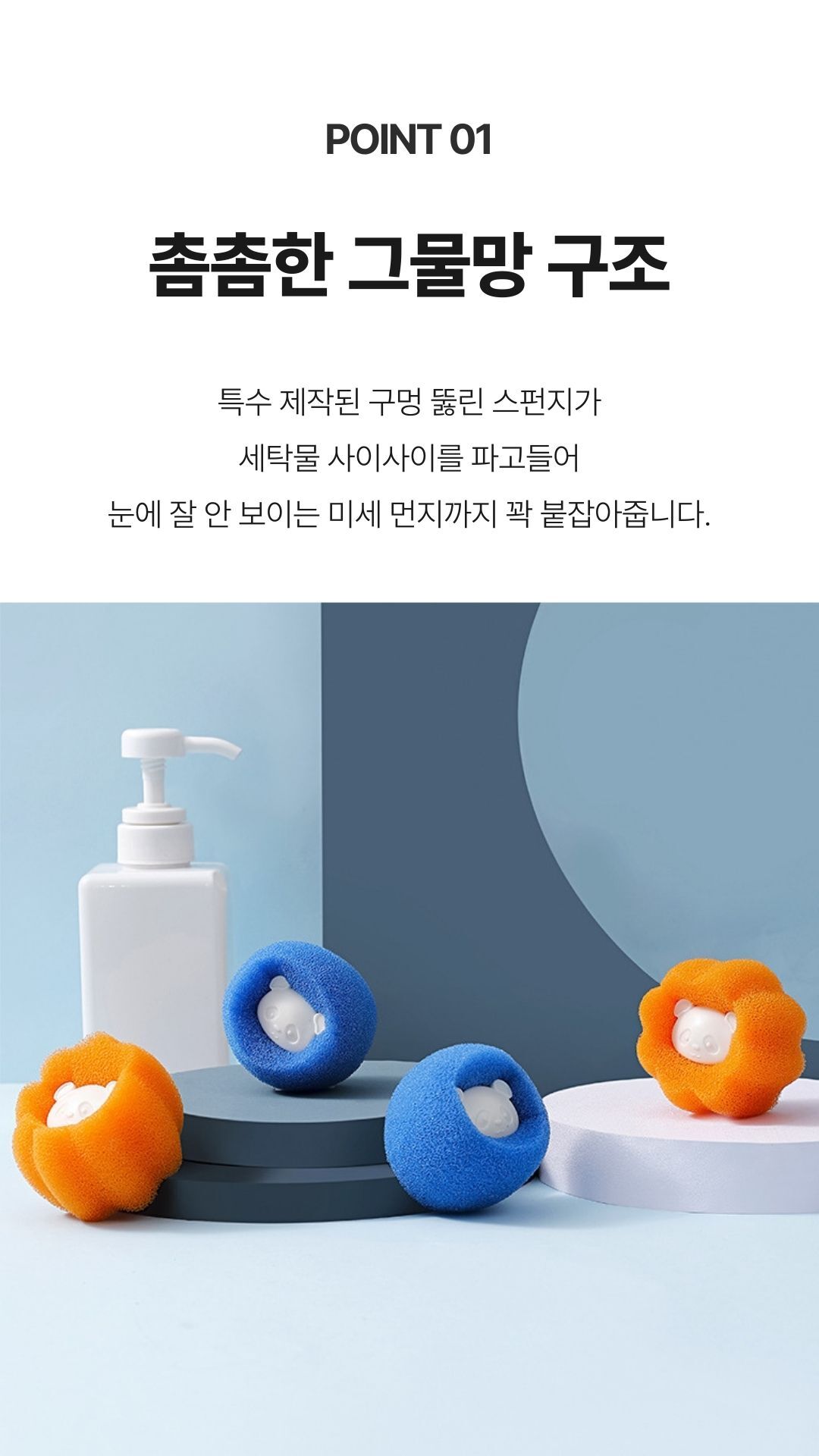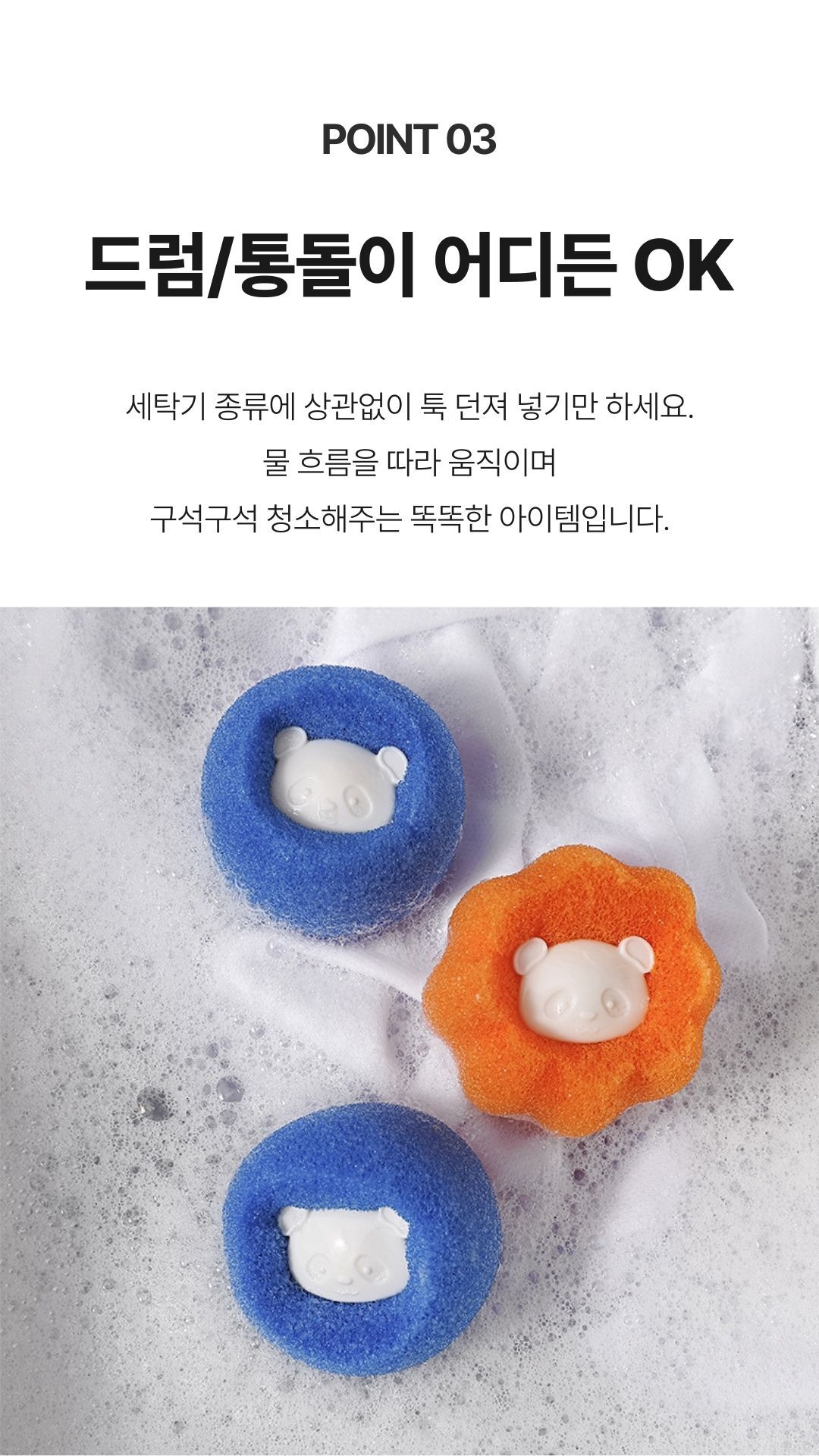 그물망 스펀지 판다 세탁볼 엉킴방지 먼지제거용 드럼 통돌이 세탁기 공용