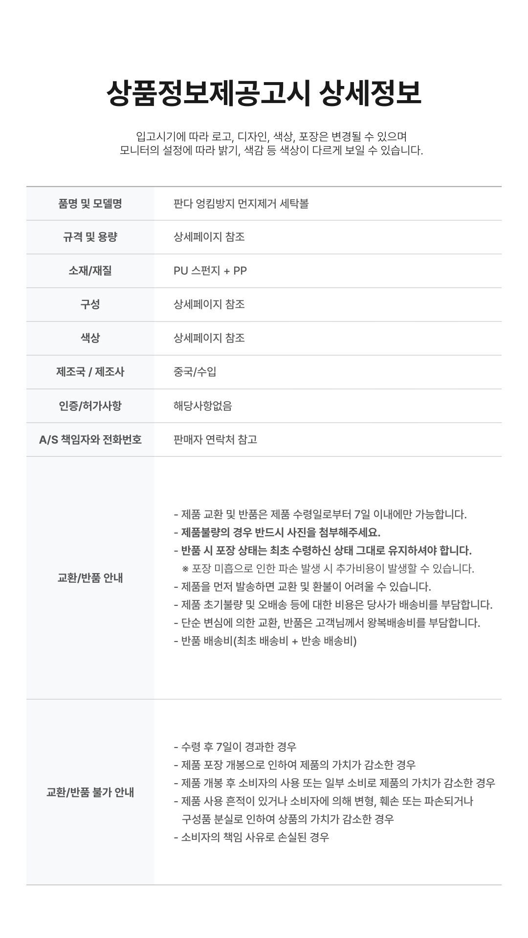 제품하자가 아닌 소비자의 단순변심, 착오구매에 따른 청약철회가 불가능한 경우 그 구체적 사유와 근거 배송ㆍ교환ㆍ반품 상세설명페이지 참고