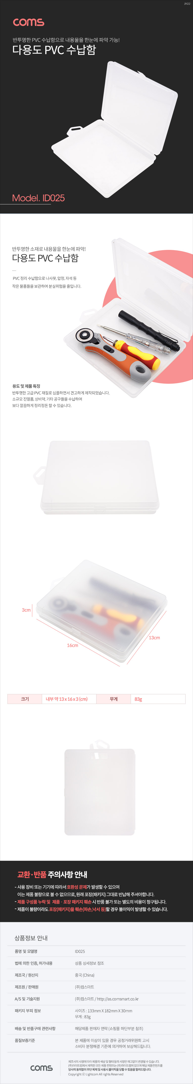 다용도 PVC 수납함 / (내부) 약 13 x 16 x 3cm
