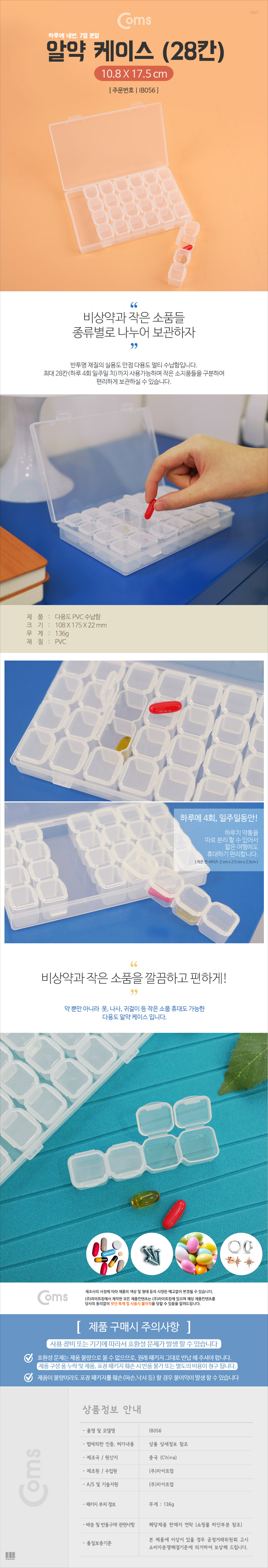 알약 케이스 28칸 / 보관함, 다용도, 수납함, 케이스, 휴대용