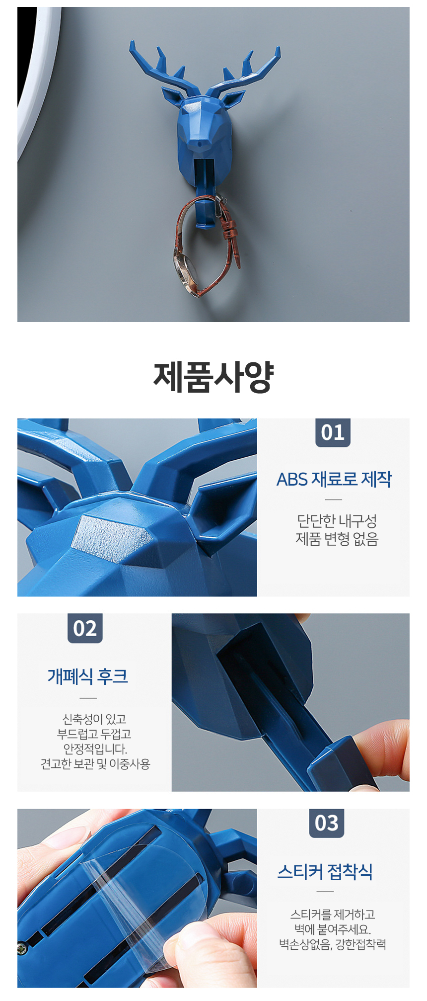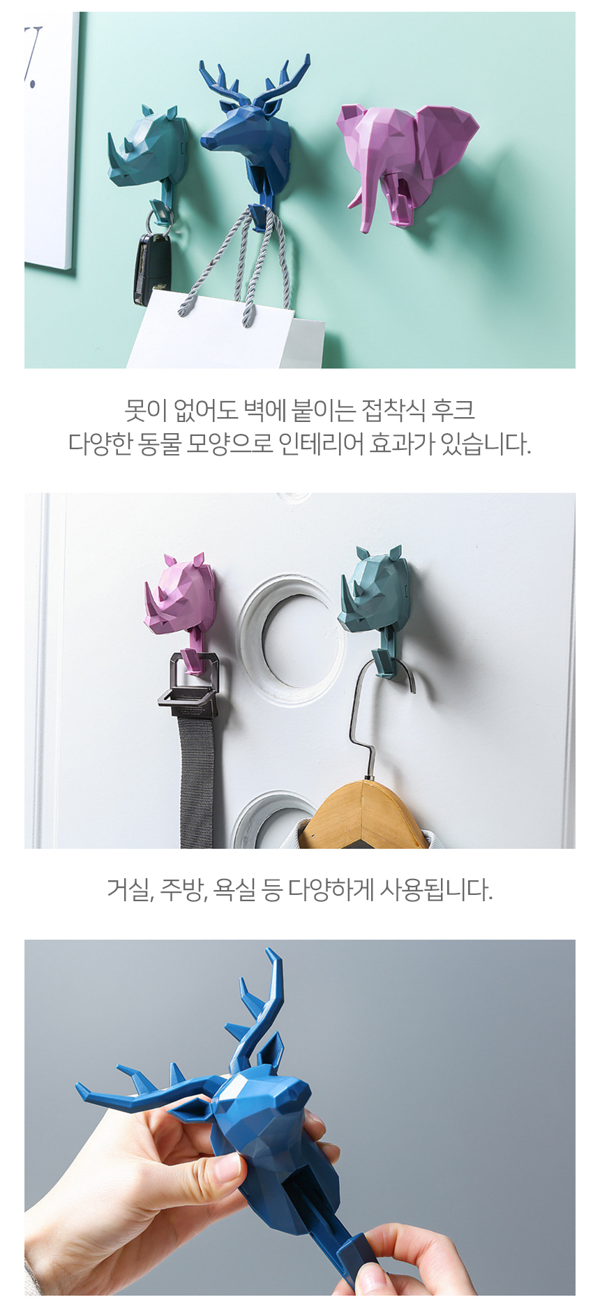 동물모양 못없이액자걸이 책상 가방 모자 걸이