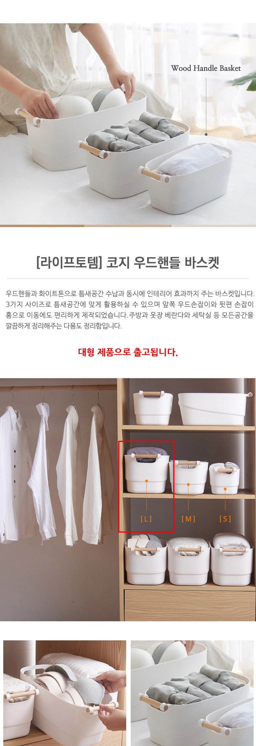 라이프토템 코지 우드핸들 바스켓 대형
