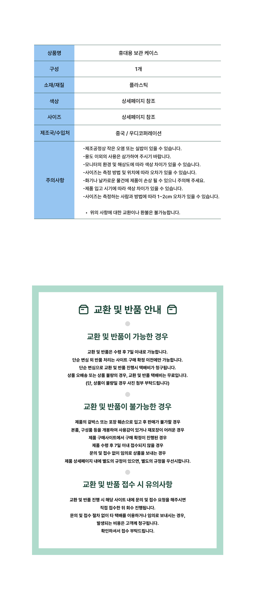 제품하자가 아닌 소비자의 단순변심, 착오구매에 따른 청약철회가 불가능한 경우 그 구체적 사유와 근거 배송ㆍ교환ㆍ반품 상세설명페이지 참고