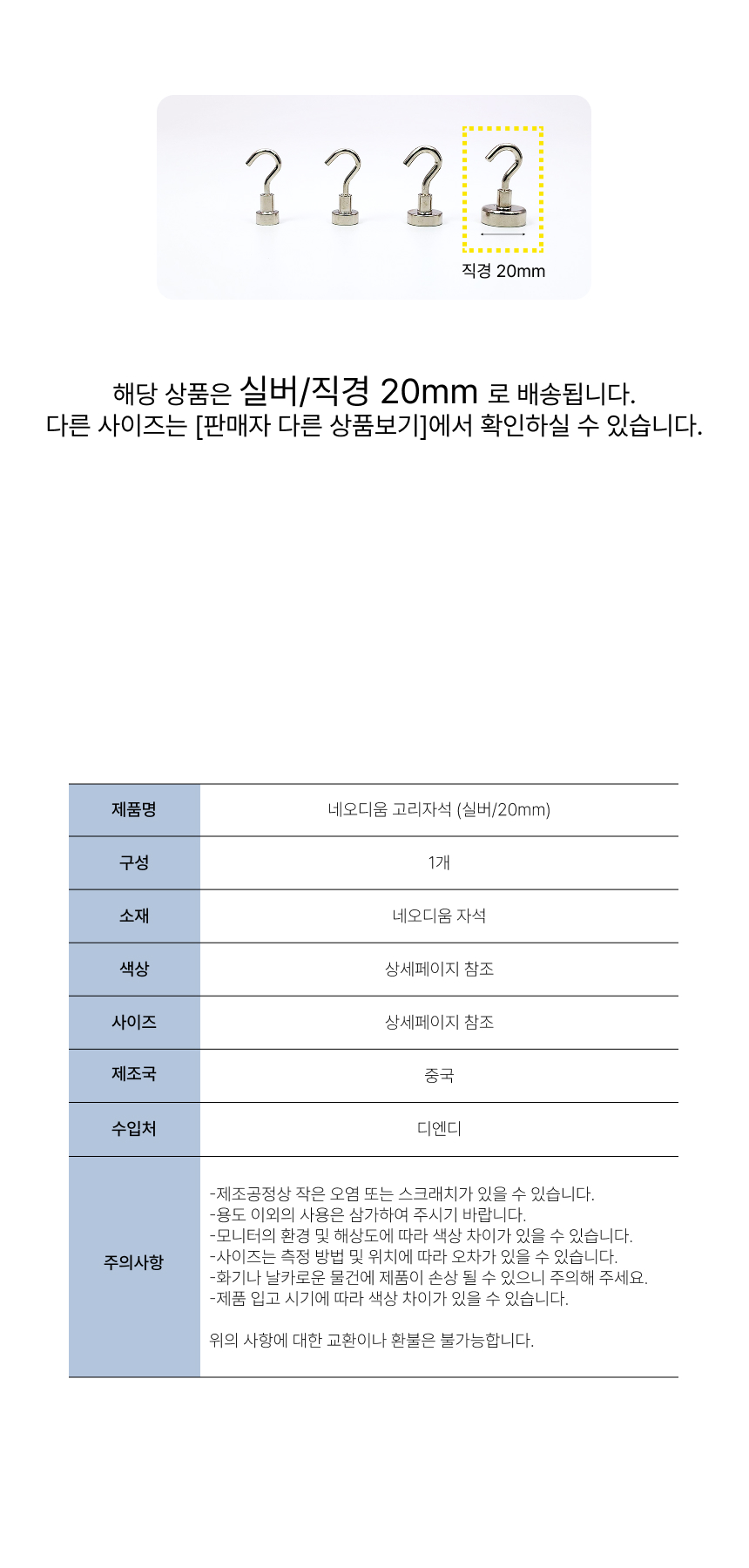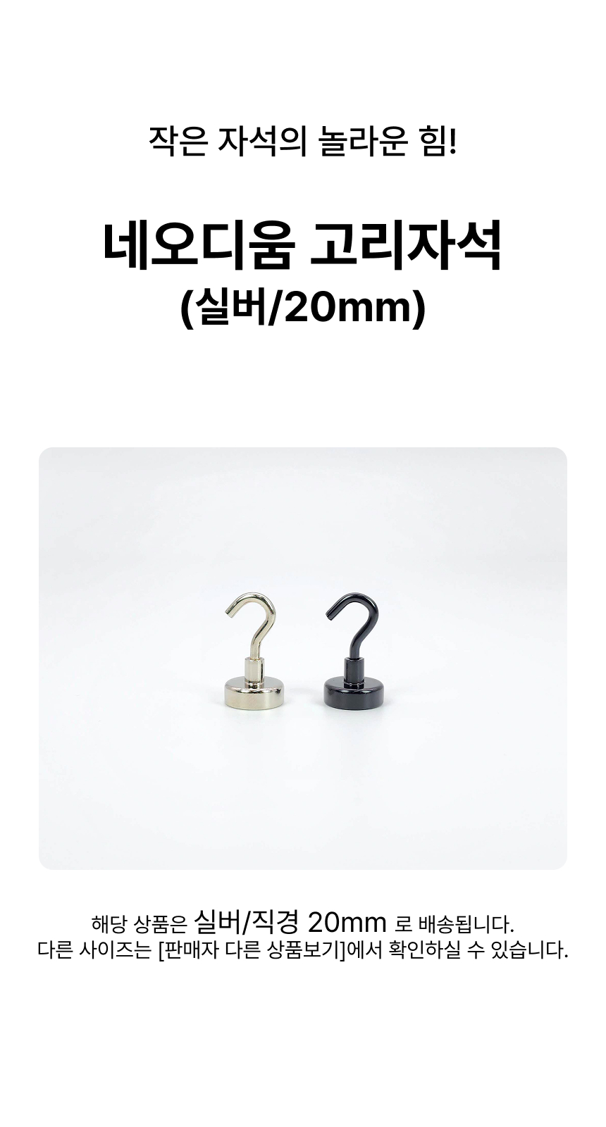 무타공 초강력 네오디움 고리 자석 후크 (실버/20mm)