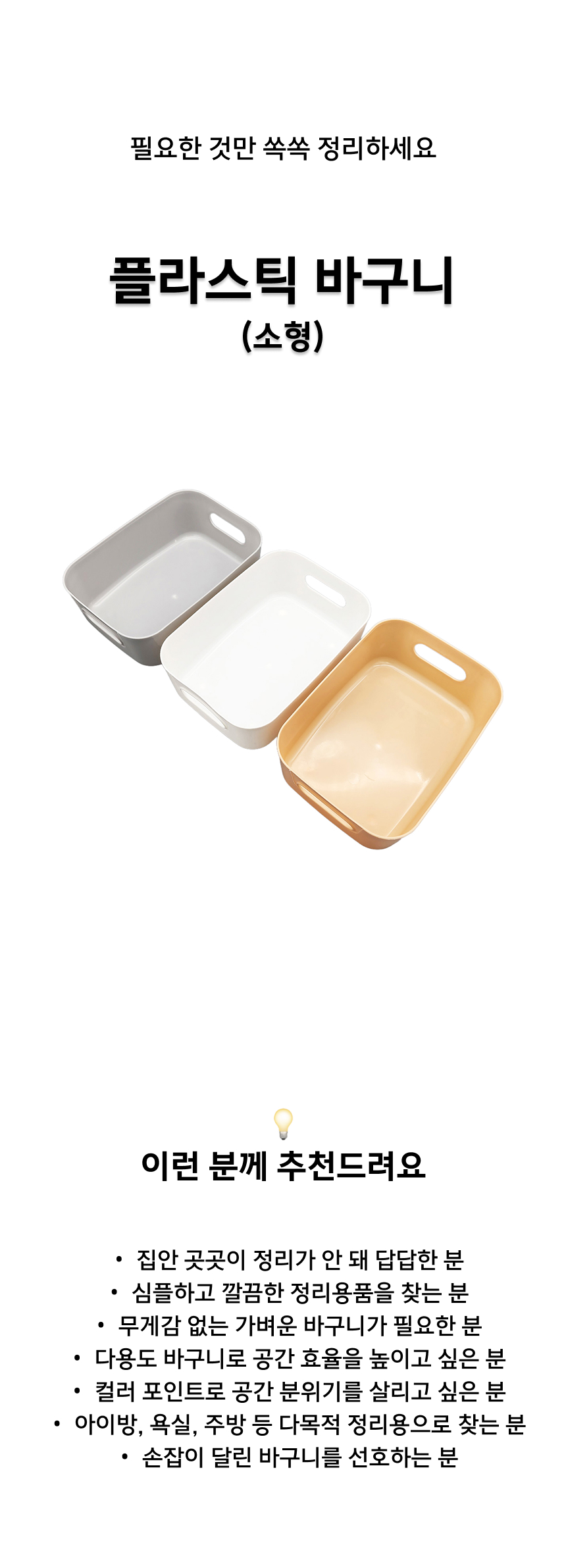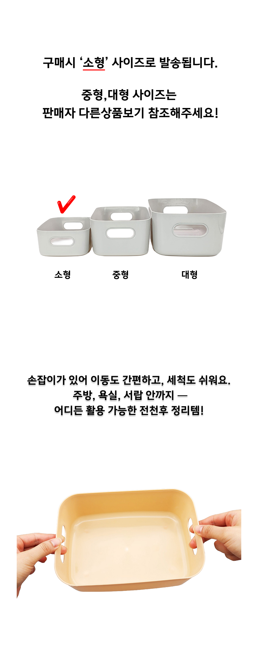 수납 바구니 소품 장난감 수건 다용도 바스켓 보관함 손잡이형 (소형)