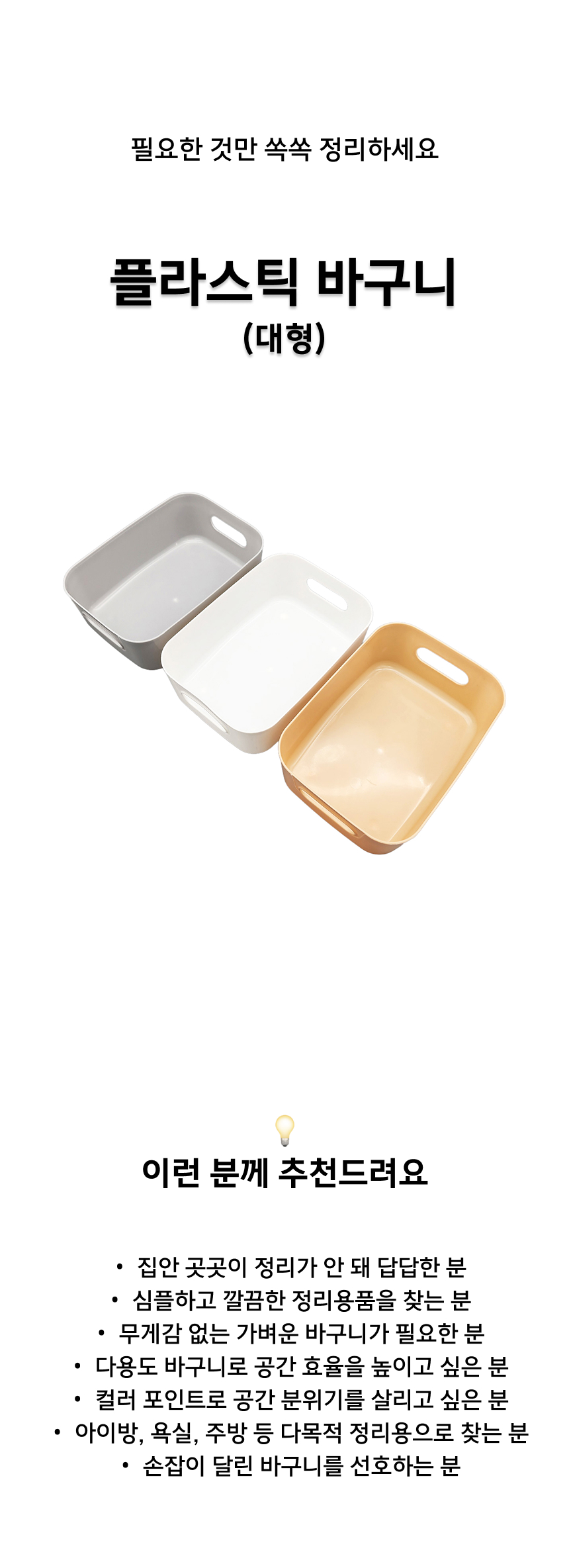 수납 바구니 소품 장난감 수건 다용도 바스켓 보관함 손잡이형 (대형)