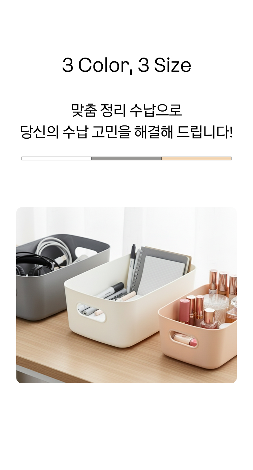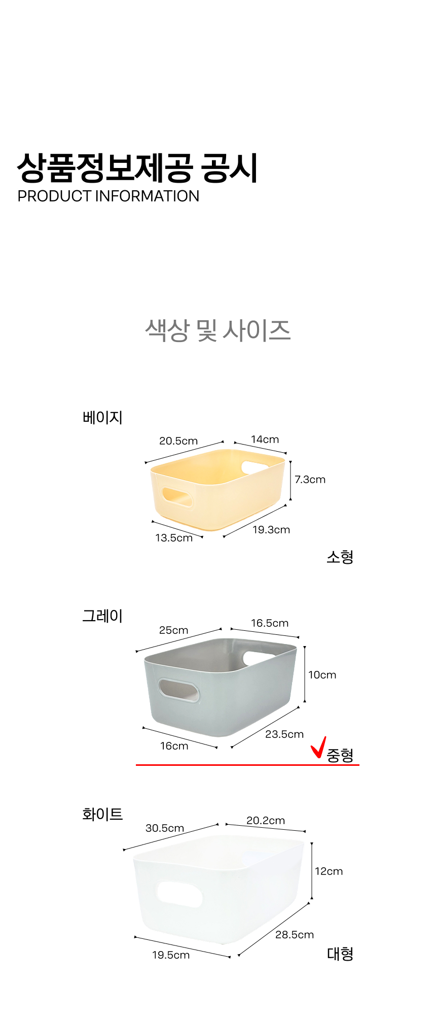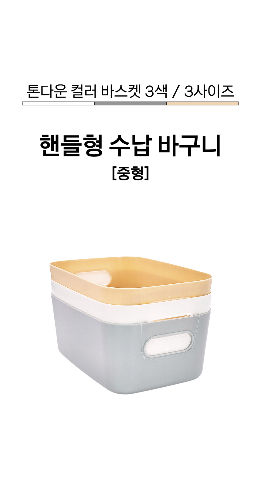 펜트리 정리 플라스틱 손잡이 바구니 중형 3색