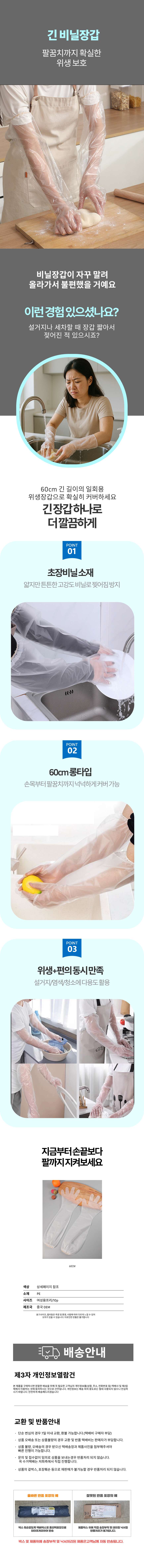 손보호 밴드형 일회용 비닐긴장갑 롱위생장갑 60cm