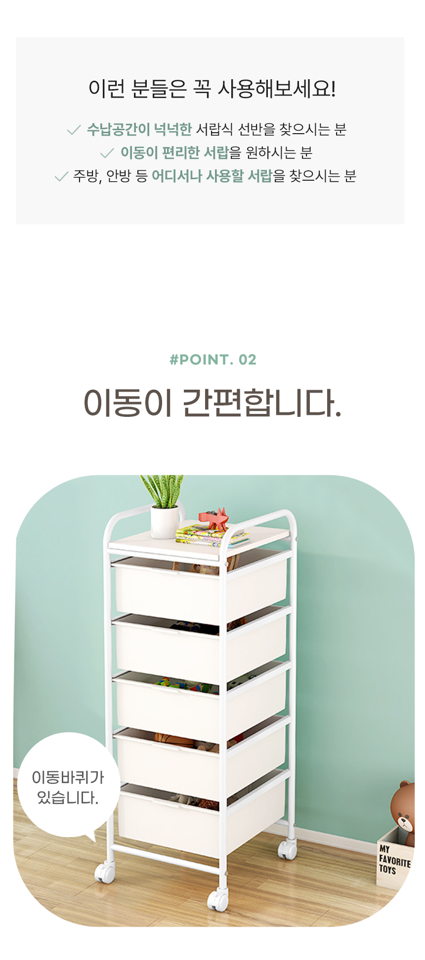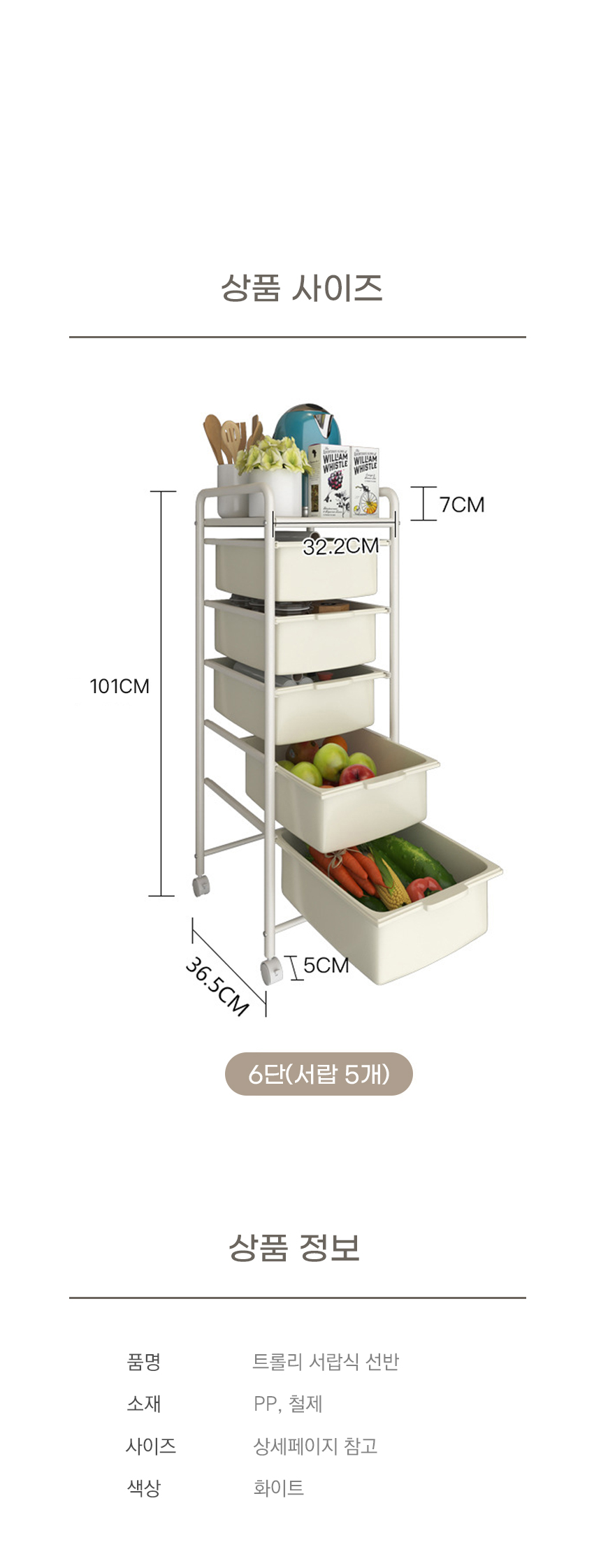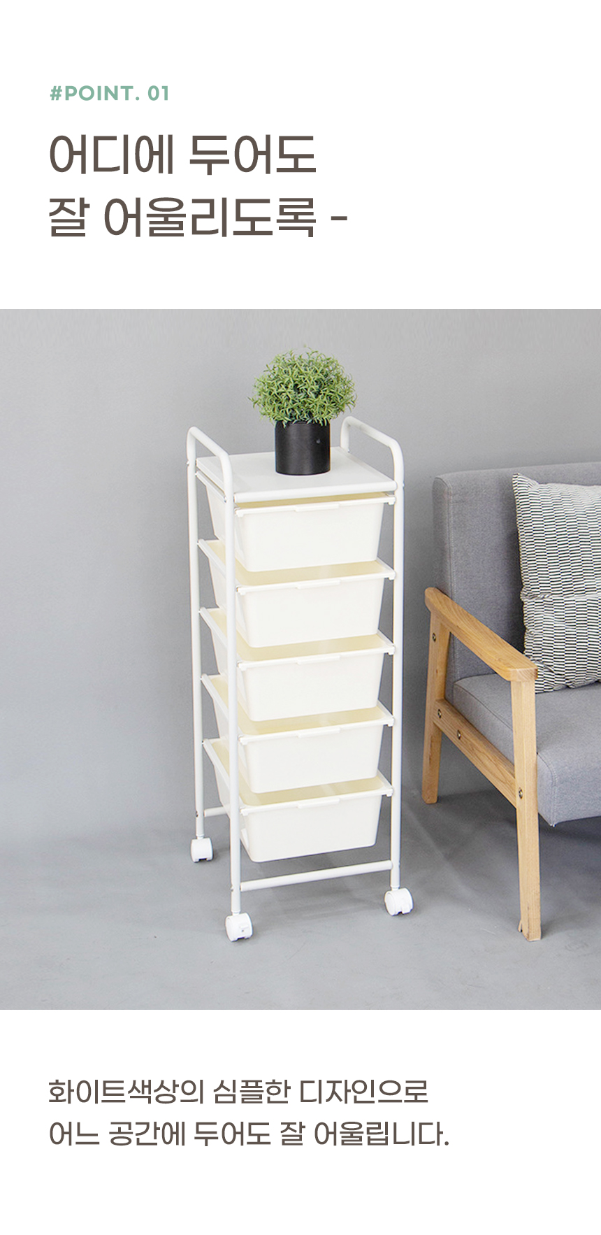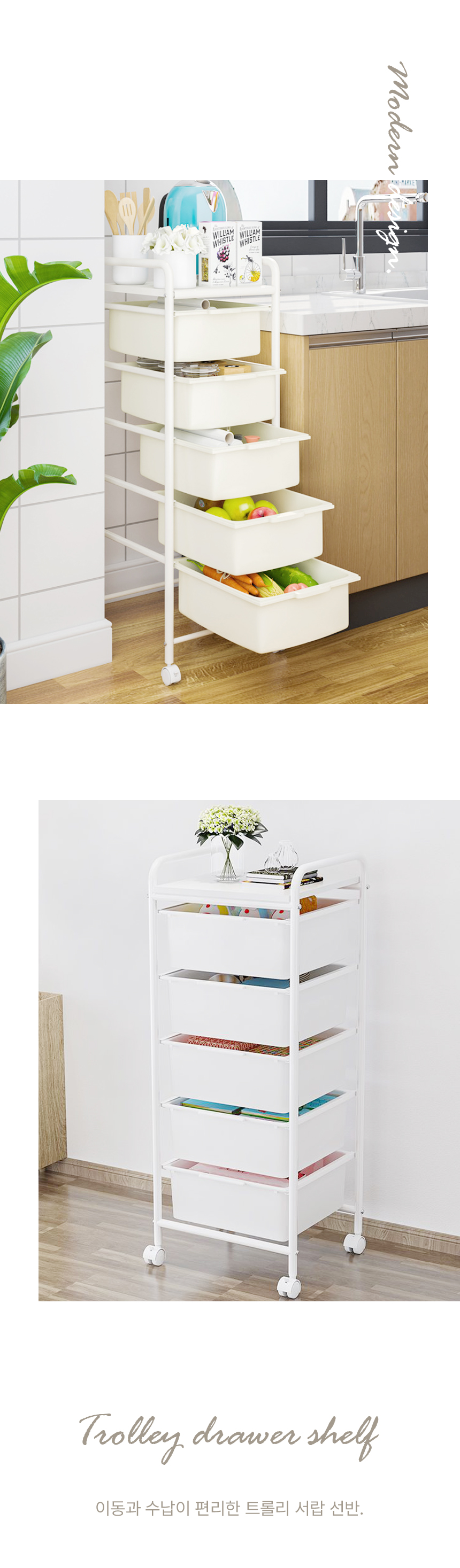 이동식 서랍 트롤리 선반 수납 바구니