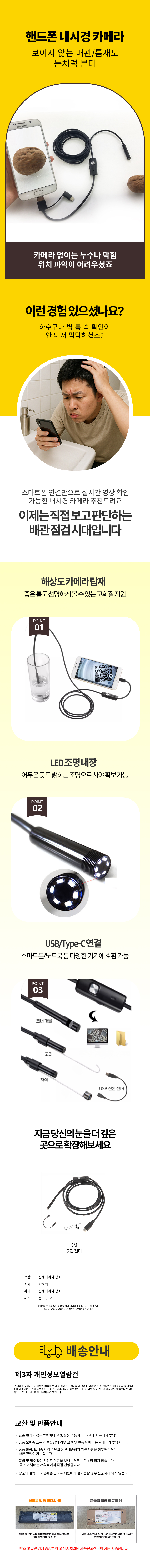 스마트폰 연결 내시경 카메라 하수구 누수탐지 배관