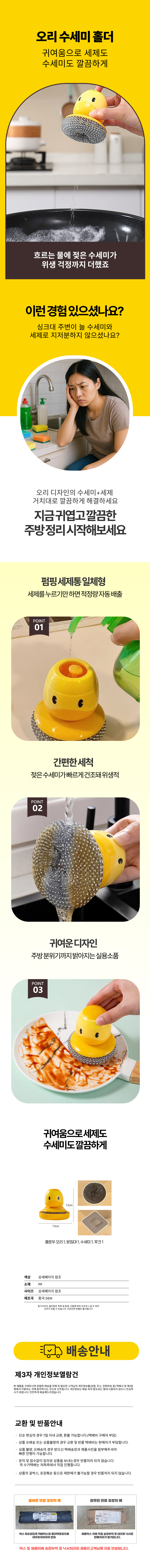 오리 수세미 주방 철 수세미 일체형 세제 펌핑 홀더