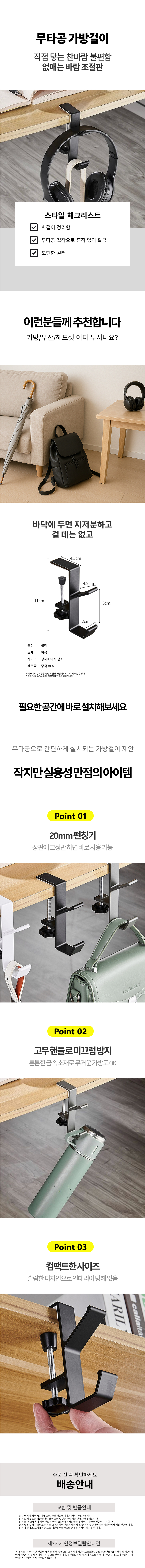 수납 무타공 데스크 가방보관 좁은공간 책상 가방걸이